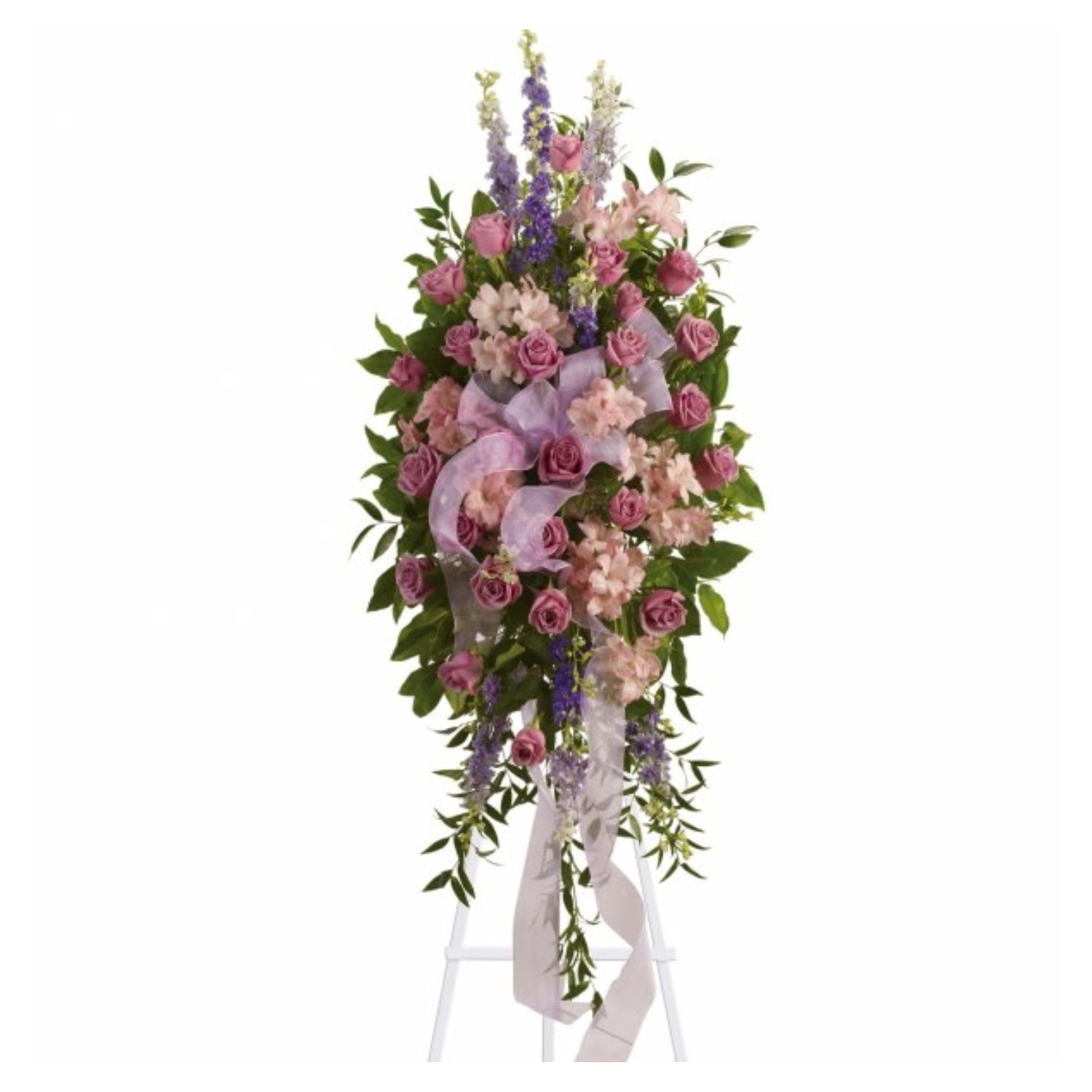 Utterly feminine, this spray is an extraordinarily beautiful way to bid farewell to someone who will remain forever in your heart. A bevy of lovely lavender flowers will soothe souls and deliver strength and hope to those in mourning.