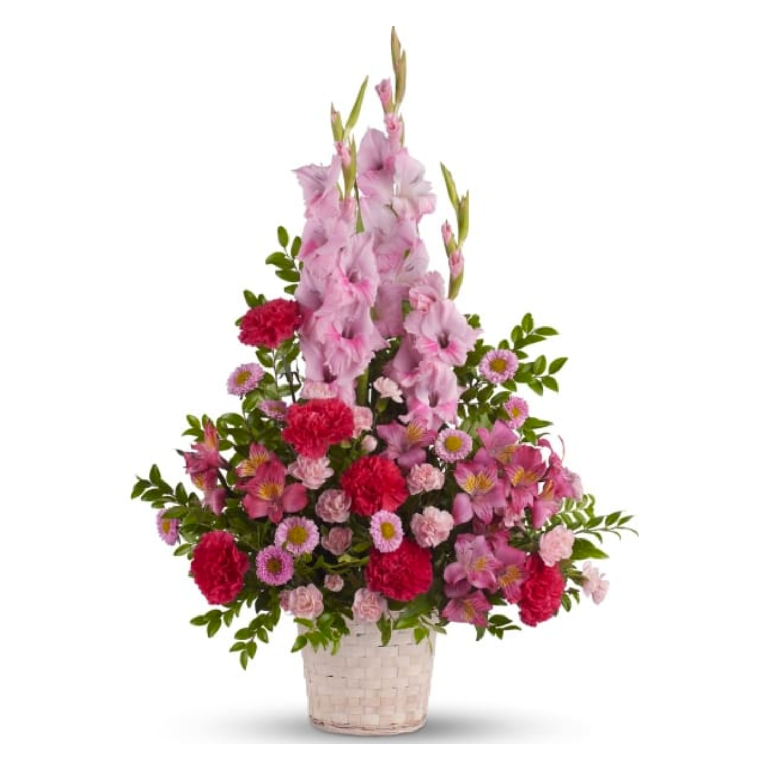 This Memorial is an elegant collection of sympathy flowers designed to provide comfort and show compassion. With a vibrant rainbow of colorful blooms, the basket is the perfect way to express sorrowful condolences. Each carefully crafted arrangement is made with hand-selected flowers, creating a thoughtful and memorable tribute to your loved one.