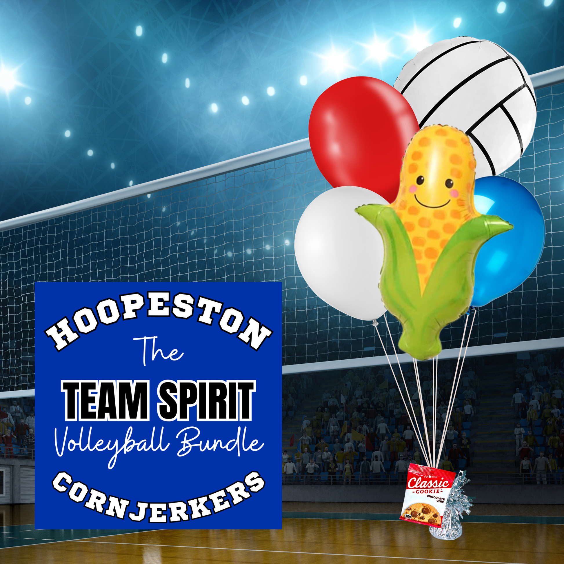 Celebrate your Hoopeston Cornjerker volleyball player's every ace and dig with these energetic and festive balloon arrangements! These vibrant bouquets capture the spirit of teamwork and competition, making them the perfect way to mark any special occasion on the court. Whether it's a tournament win, a personal best, or just a day to show your support, these balloons will make the moment memorable.