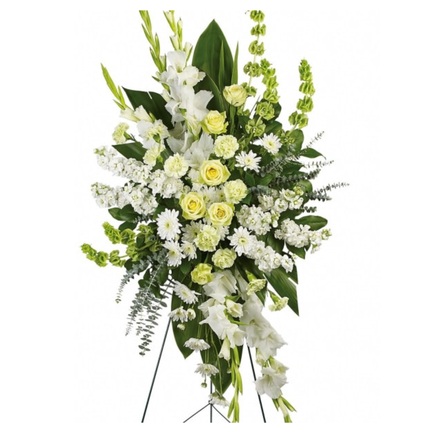An elegant expression of sympathy, this wondrous white and green spray conveys purity and peace. A glorious choice for a magnificent memorial.