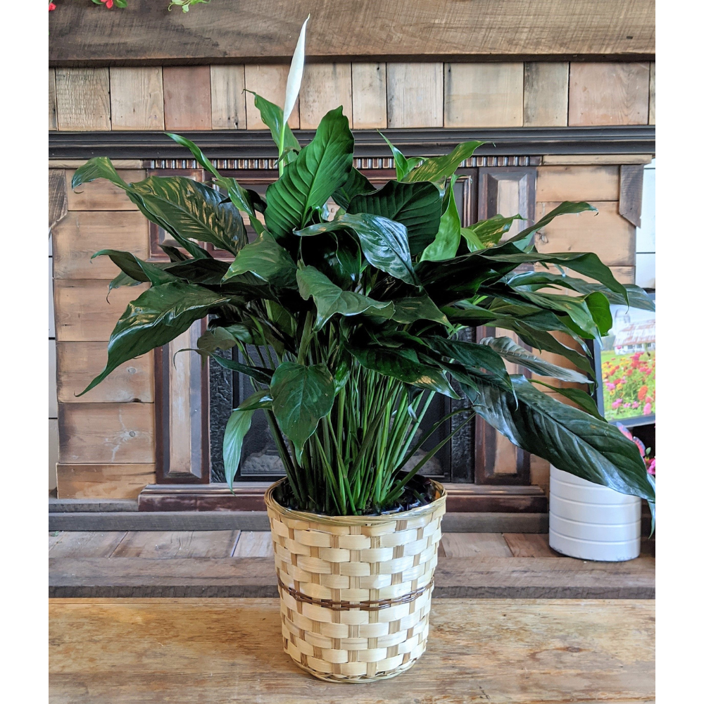 Please Note: The Peace Lily plant arrangement shown is an example of our care. The Peace Lily size is determined by the pot it comes in, and just like people, their height can vary! Your plant may arrive showcasing its elegant white blooms, with buds getting ready to unfurl, or even without flowers at the time of delivery. Don't worry, with a little love and care from the recipient, they can often rebloom and bring joy again. We love to use unique baskets to add a special touch, so the basket you receive may vary in color and style, but we promise it will be just as comforting. Our experienced florists will select the healthiest and most beautiful Peace Lily to create a lovely tribute for you. For any specific Peace Lily or basket requests, or to check on current availability (we get new plants every 1-3 weeks!), please give us a call at (217) 283-5578 during our business hours. We're always happy to assist you in sending the perfect expression of sympathy.